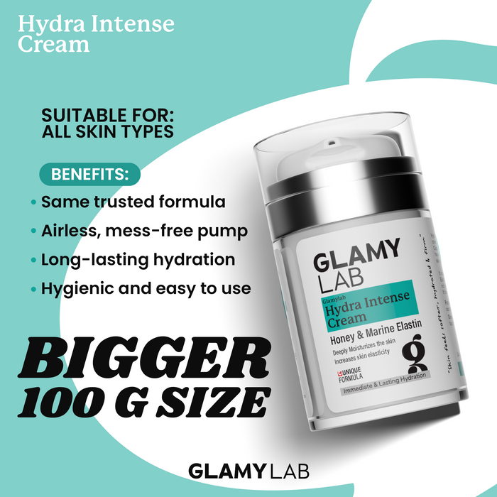 Your new skincare essential, the Hydra Intense Cream, now offered in 100 g size and upgraded airless packaging, is packed with Marine Elastin, which helps improve skin elasticity and provides wrinkle-smoothing benefits by improving the strength of the skin’s supporting tissues. The Hydra Intense Cream 100gm is formulated Ginseng and Honey which promote a healthy and revitalized skin appearance.